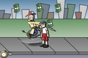 丧心杀人狂为了达到目的可以不择手段。他要在规定的时间内骑着小毛驴到达指定的终点,途中要尽量多的杀死路人和收集金钱道具以增加时间。