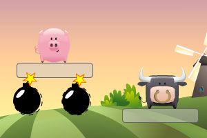 仇恨的公牛与小猪有着莫大的深恨,看着它们这样互相争斗下去也没有办法了,用炸弹把牛炸飞吧!