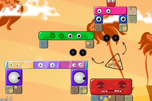 鼠标点击消除其他物块,帮助小红方块和大红方块会合,不能让小红方块掉出屏幕外哦,R键重玩。 提示:点击次数越少,获得的星星越多哦。