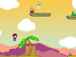 马里奥大叔不只是长大后为了救公主才到处冒险,其实他小时候就很爱闯荡,为了奶瓶,他可以一路过关斩将,打败怪物,小朋友快来帮帮他吧。