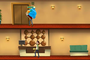 释放垃圾 在合适的时机,按空格键释放垃圾,让下方的人物接住垃圾,最终丢到垃圾桶里。