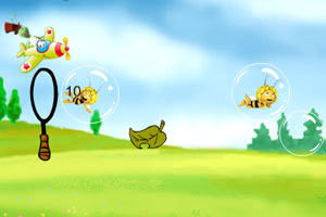 介绍:这是很好玩的一款小游戏哦!方法非常的简单:就是用你手中的网吹出的泡泡再网住这些小蜜蜂们。快快开始吧!看看谁的成绩最好吧!