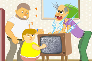 大叔家的电视坏了,请大伙来看看怎么修理,估计拍拍这个老电视就好了,准备好,大家一起拍电视。