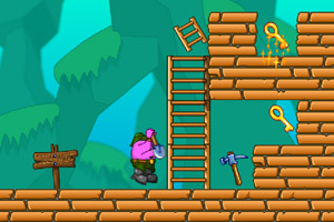WSAD或方向键控制移动和使用道具,锤子可以敲碎砖块;铲子可以挖掘砖块;梯子可以搭梯往上爬!