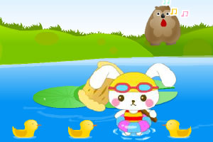 勇敢的小兔为了保卫自己的家园开始与怪物的水战,怪物出现前会放出带电的小怪物,一定要注意不要碰到它们。