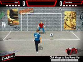 在街头的墙壁上画上球门,两个人开始接力的罚球与守门,看看你的运气如何,游戏的自由性很大,感觉比实况足球的点球训练还要难。