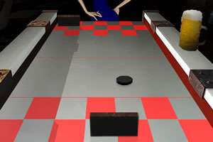 使用鼠标移动打圆盘,把圆盘打进对方的区域里。