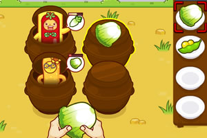 阿婆家最近来了很多小朋友,他们很调皮,尤其是吃饭的时候给阿婆很大的麻烦,阿婆必须找到他们喜欢的蔬菜喂他们。