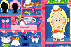 1.黄色头发。2.黄色帽子。3.小包。4.胸罩。5.紧身衣。6.黄色口红。7.夹鼻子的夹子。8.粉饼。9.眼睫毛。10.黄色腮红。11.绿色眼影。12.黄色连衣裙。13.绿色凉鞋。