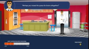 你是餐厅实习厨房配菜员,侍者会报上餐名,在画面左上角显示,你要记住并到壁橱,冰箱和锅台上去找出并交给厨师,一天结束后,厨师会对你评价,左下角的满意度为零你就等着被解雇吧!