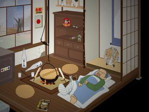老伯啊你怎么搞得腿弄断了呢?真是可怜,自己在房子里痛得唉呀的叫也没人理你,你想做什么?吃饭?还是出去逛逛,俗话说伤筋动骨100天,都这样了您就老实点吧。游戏英文原名:T's Room 3操作指南: