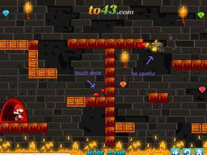 马里奥勇闯火焰洞选关版,1键进入下一关。马里奥为了能让桃子公主开心不惜冒着生命危险进入火焰洞中去采集那公主最喜欢的宝石。相传进入火焰洞的人就没有一个能活着从里面走出来的,现在我们就去看看马里奥能不能成功的闯过那危险重重的火焰洞吧!
