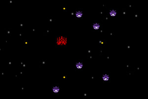 宇宙空间乱的一片散沙,来清理这些坏人吧,在一个你认为合理的位置上点击鼠标左键即可。当然你的子弹也很有可能伤害到你哦,尽量避避吧!