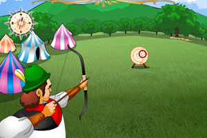 中世纪时期最英俊的弓箭手,他的百步穿杨的箭术让人们为之欢呼~你想不想穿梭时空去与他一较高下呢? @@@ 鼠标操作,把吊在大瞄星下的小准点对准靶心按下射出即可,要注意风速,如果你有够厉害挑战过前几头,会增加难度移动靶子让你来挑战~