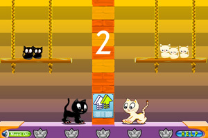 可爱的双人小游戏,可以和你的朋友一起玩哦~~小黑猫和小白猫吵架了,它们决定通过决斗的方式来捍卫自己的尊严!看谁先将砖块推过去砸到对方谁就胜利啦!