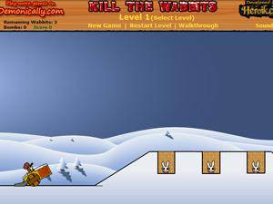 杀死兔崽子第2部,在游戏的关卡中,你会发现许多可爱的小兔子,当然你也可以把它们叫做兔崽子,操控着大炮的你,首要任务就是杀死这些兔崽子。游戏画面简洁但是游戏难度却不小哦,能否掌握好炮弹发出的距离与高低,就看你的水平了!