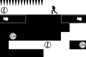 方向键←→控制移动,方向键↑/空格跳跃,方向键↓/Shift键空间转换。拿到钥匙后,相应的机关门会打开或移动。