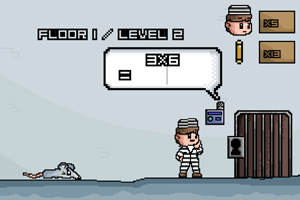 囚犯无法忍受非人的生活,冒险逃跑。监狱里到处是大老鼠,用力踩死它们,夺路而逃,收集途中的金币,在门口答对每道乘法题解开密码开门逃出去。没想到每一关的出口竟然要算数学题,小朋友你们会吗?