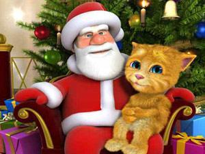 金杰和汤姆猫、圣诞老人在一起过圣诞节,圣诞派对的糖果和玩具堆满了整个屋子,快来和大家一起玩耍吧