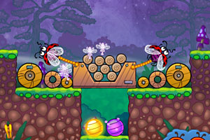 鼠标左键点击点击木块拖动控制瓢虫拖拽绳子的方向,点击路灯让萤火虫扛走。按数字键1直接过关。