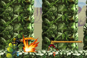 玩家一:键盘AD键控制人物移动,S键防御,J键攻击/确定,K键跳跃,L键冲刺,U键远攻,I键必杀,O键召唤援助 玩家二:键盘←→键控制移动,↓键防御,1键攻击/确定,2键跳跃,3键冲刺,4键远攻,5键必杀,6键召唤援助 组合键:J+K,S+J,W+J,S+U,W+U或1+2,↓+1,↑+1,↓+4,↑+4,更多的组合技能在游戏中探索能得到更多的乐趣哦!