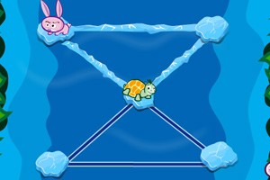 鼠标点击河面的冰块移动乌龟躲避兔子的追击。
