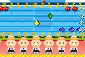 根据箭头到达左侧的地方,按键盘方向键↑↓←→对应的按键弹奏音乐。