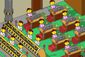 游戏中使用鼠标操作,左键点击打瞌睡的工人让他们清醒继续工作。如果让生产量降到60%游戏就会结束哦。