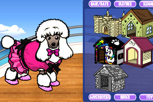 现在的狗狗们都享受着顶级的生活,不仅要经常洗澡,还要穿上漂亮的衣服哦,来帮它吧~@@@鼠标操作,先点下方的三个按钮给狗狗清理干净,即可换装了,wash=洗澡、dry=吹干、brush=刷子。