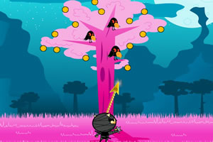 鼠标移动控制发射方向和力度,左键点击发射飞镖,树上的果实有些是不能打掉的哦。