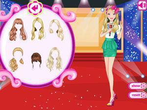 美女主持人马上就要开始录制节目了,现在需要一身即漂亮又得体的装扮,你能帮帮她吗?快来把主持人打扮得漂漂亮亮的吧!