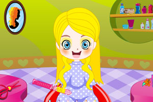 游戏中使用鼠标操作,点击器具为小女孩美发。