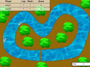 麻球游戏 在一条长长的河道上,蓝天白云的映衬下,你和你的朋友划着船比赛谁更快,真是惬意啊,注意拐弯哦,不要撞上岸啦。