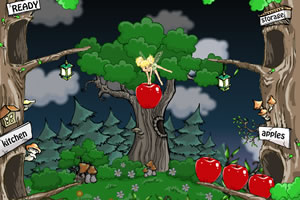 游戏中首先用鼠标点击拖动苹果到左边kitchen洞口,做好后再从ready洞口拖动果酱到storage洞口即可得分。