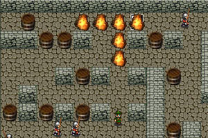 这里被重兵重重把守,要想从这里出去就要把这些士兵全部炸死!千万小心哦,不要让他们用手中的矛刺杀你!