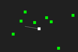 在一个黑暗阴森的背景上,孤零零的只有一个白方块,忽然从黑暗里冒出来了一个绿方块,两个绿方块,越来越多的绿方块冒出来了,很明显绿方块来势汹汹,不怀好意,赶快帮助白方块消灭绿方块吧!