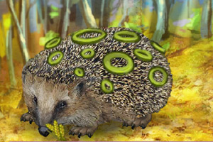 游戏中使用鼠标操作,点击移开树叶找到金色甲壳虫、缩成球状躲开猫头鹰的袭击、移走树叶清洁刺猬、给动物打扮、选择食物给刺猬喂食,移动帮助刺猬向前爬行。