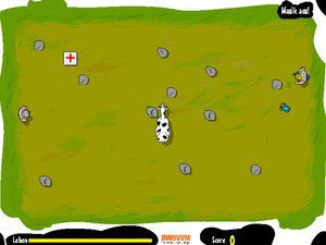 “不知道这些人为什么要用电来电击我们,我们只想吃到新鲜的草而已,被他们电过之后,我就只能吃药来恢复体力了”,以上是可爱牛的自白。这是一款休闲动作类小游戏,游戏画面简单逗趣,玩家们要控制好可爱牛的方向,用它的后腿踢飞前来电它的人类!这并不是件简单的事情,快来试一试你的身手吧!
