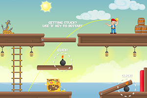 游戏介绍:海盗为了保护好自己掠夺来的宝贝,特意把宝贝放到了一个谁都拿不到的地方,不过这也苦了海盗,因为他每次抢了新宝贝,都要想破脑筋的把它们成功放进箱子里。