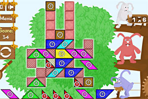 使用鼠标左键拾取或放下碎片,空格键转动碎片。 提示:将碎片放入右边中间的兔子上可以消除。