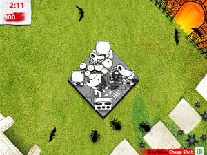 妨碍我唱歌?下地狱去吧!狗狗乐队在进行着排练,可是,周围却围攻过来许多的蝙蝠和蜘蛛来捣乱,为了能让排练很好的进行下去,来把这些个障碍扫除赶紧。