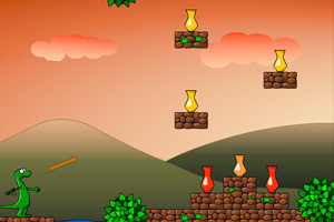 小恐龙很喜欢扔石头,经常用花瓶来练习扔石头的技巧。我们来帮助它打碎所有的花瓶吧!