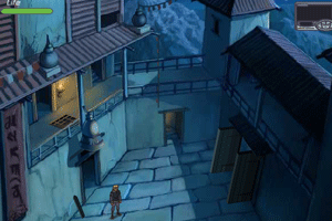1、玩家一开始在院子里,马上拿起左边靠墙处的木板,跑到大门处关上门(要抢时间,因为一会就有持枪的家伙过来,他们会踢开门,不过关了门可以抵挡一阵子。 2、关门之后,马上进上面的门,来到另一个场景,拣起门边的锤子,在荡来荡去的罐子到远端的时候用锤子敲断近断夹罐子的夹子。别被罐子打到,要伤血的。 3、这样罐子荡了几下就会停下来,顺着它的系绳爬上去拿到爆竹。 4、按向日葵、8字花、菱形花、船舵图案的顺序踩地上的暗板,就会在一侧出现台阶,走下去,到第3个场景。(这里的顺序是从开始时玩家左边屋里的墙上看来的) 5、在佛像左边可以拿到加血的药材,观察地上的图案,分别是1个菱形花、2个向日葵、3个8字花,4个摇铃。所以从佛手处开始,顺时针应该把4根柱子的图案分别统一为菱形花、向日葵、8字花、摇铃。这样佛像就会分开,出现暗门。 6、进入暗门,玩家会处在开始时那个院子的二楼,用最快的速度跑到上方横着的走廊处取下绳索,回到佛像屋里躲避下面的敌人的枪击,这时如果血少可以加点血。再走出去,在横着的走廊左端上三楼,推下石球砸坏对面的墙,然后快速回到屋里,否则又会吃花生米。 7、再次走出来,用最快的速度顺着走廊跑到右下角进入下一个场景。 8、在门边朝下的那个屋檐角下使用绳索,套在屋角上,爬上去开动机关,架好石桥。 9、下来后用灯火点燃爆竹,发射烟火,将对面大门炸开(注意风向的影响} 10、然后跑过去就可以了。
