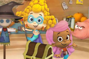 游戏中使用鼠标操作,点击给人鱼打扮并布置万圣节场景。