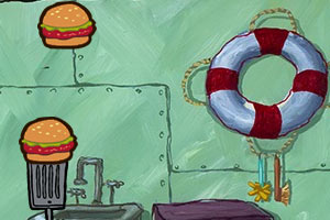 海绵宝宝在一家汉堡店打工,因为这家店的机器有毛病,做出来的汉堡有的是坏的,海绵宝宝必须把好的汉堡收集收来,这个工作量可不少哦~快来帮帮它吧!@@@鼠标移动收集汉堡。