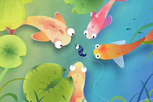 五彩的游鱼,翠玉般的莲叶,茂盛的水草,组成了一幅宁静美好的水塘画面。晴好的天气里,撑起伞,来钓鱼吧!