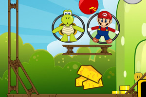 我们要使用大炮,帮助马里奥第一个滚到奶酪处,吃到奶酪,一定要控制好大炮的发射力度和角度哦!
