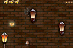 按住左键小虫持续向上前方飞行,释放左键小虫下落;每点亮10盏灯小虫无敌数秒;避免碰到蜘蛛、顶部和底部屏幕;收集风吹掉蜘蛛网。