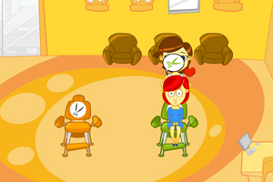 鼠标操作,客人的头顶会显示图标,按客人头顶的图标,鼠标单击拖动客人到合适的位子上进行美发。