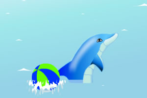 左右移动 键盘方向键←→控制海豚移动顶球,不让一个球掉落到海里。